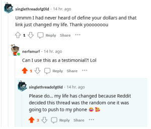 After assisting a few individuals this way, a random Redditor’s message caught our eye. They expressed how the link to their personalized plan on DefineYourDollars ‘changed their life.’ This affirmation of our work’s impact was both humbling and exhilarating. With their permission, we’re now proudly sharing this as a testimonial. It’s a testament to the unexpected ways our efforts can reach and significantly benefit people’s lives.